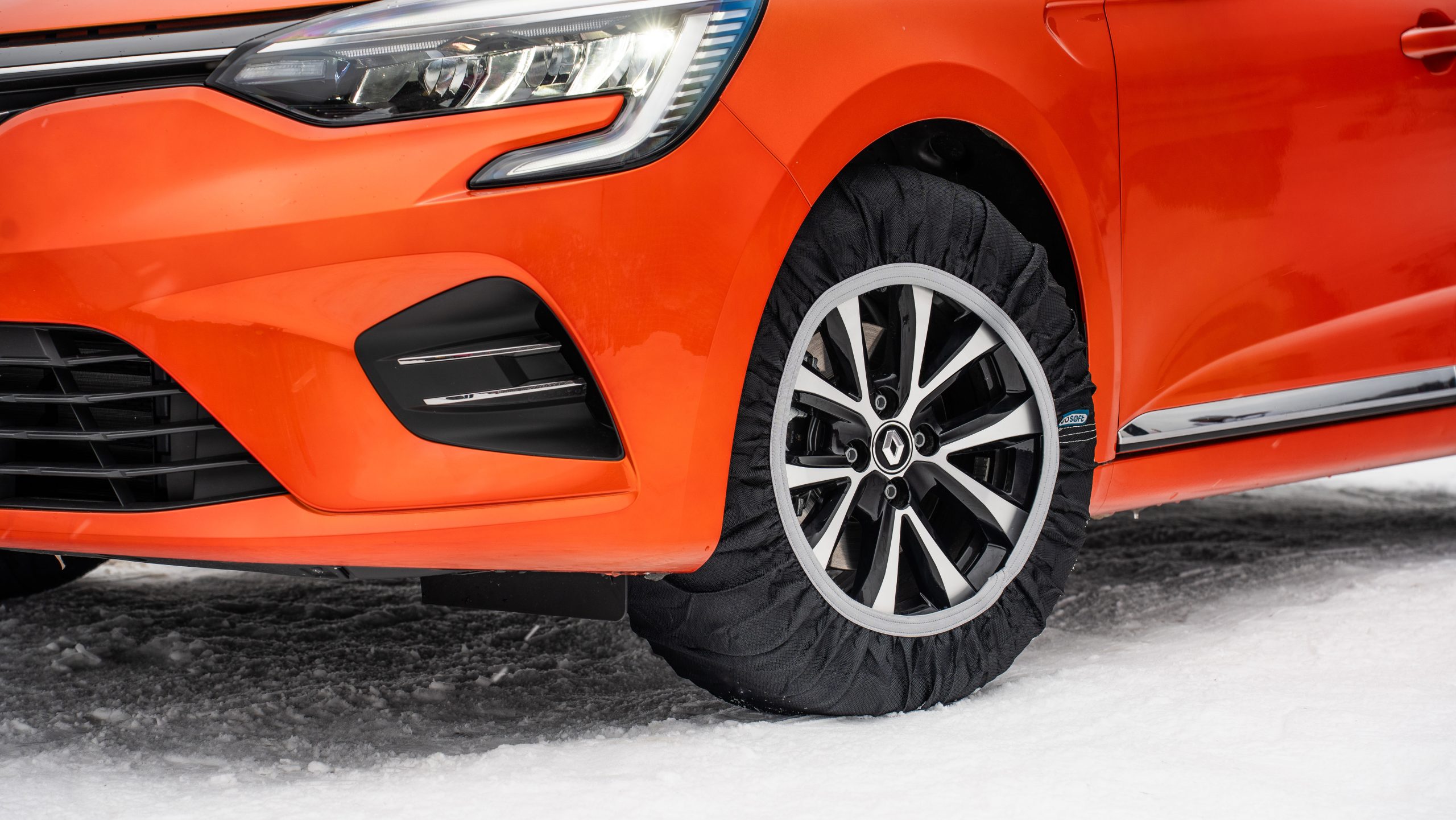 Le calze da neve GoSoft sono già assemblate e, grazie al doppio elastico, possono essere facilmente allargate durante la fase di montaggio e smontaggio per calzare la ruota.